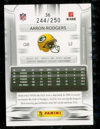 2009 Playoff Prestige Xtra Points Gold 244/250 Aaron Rodgers #36 Green Bay Packers. Raw and ungraded. Smoke and pet free.