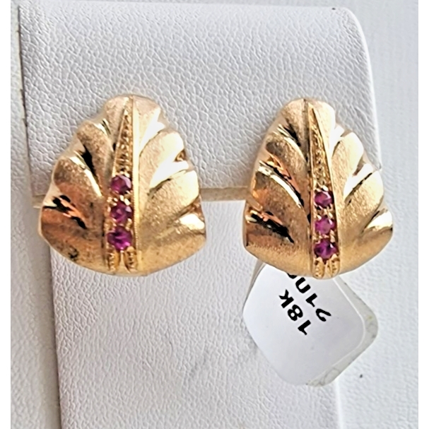 750 18K ROSE GOLD NATURAL PINK RUBY OMEGA CLIP LEAF EARRINGS 7 GRAM AT