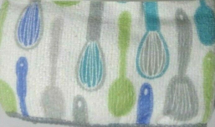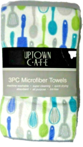 Uptown Cafe Cooking Utensils Kitchen Towels Microfiber Blue Green Gray 3-Pc NEW