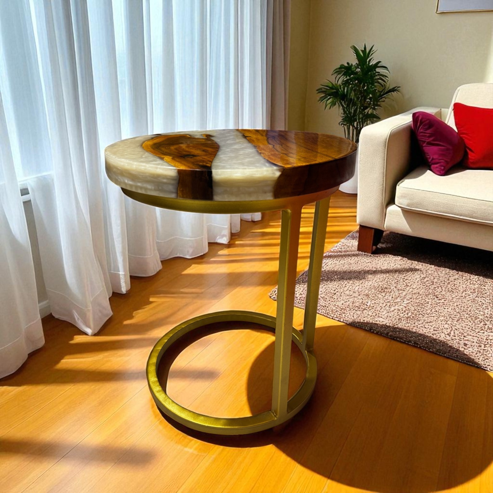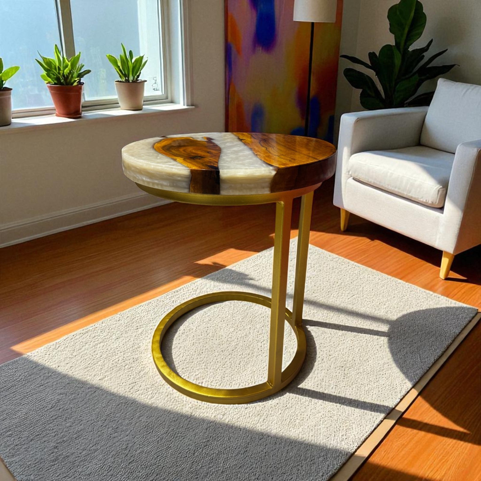 White Epoxy Round Coffee Table Top Royal Look Handmade Furniture Cafeteria Decor