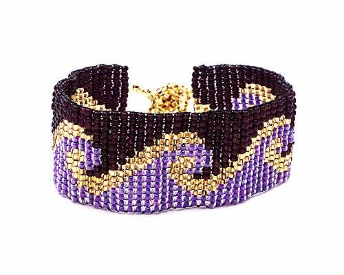 Product description: Embrace your inner fashionista as you wear this bright and glamorous beaded bracelet. Beaded by hand, one seed bead at a time, this fabulous piece has vibrant color combinations and creative patterns that are pleasing to the eye. Liven up your outfit with this handmade bracelet.