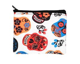 Sugar Skull Pattern Padded Coin Purse Zipper Pouch - Day of the Dead Fashion Han