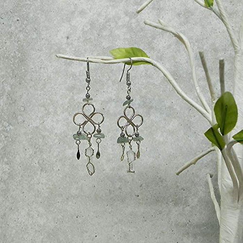 Silver Metal Flower Design Chip Stone Wire Wrapped Clear Quartz Crystal Dangle E
