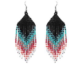 Large long multicolored Czech glass seed bead fringe dangle earrings. |