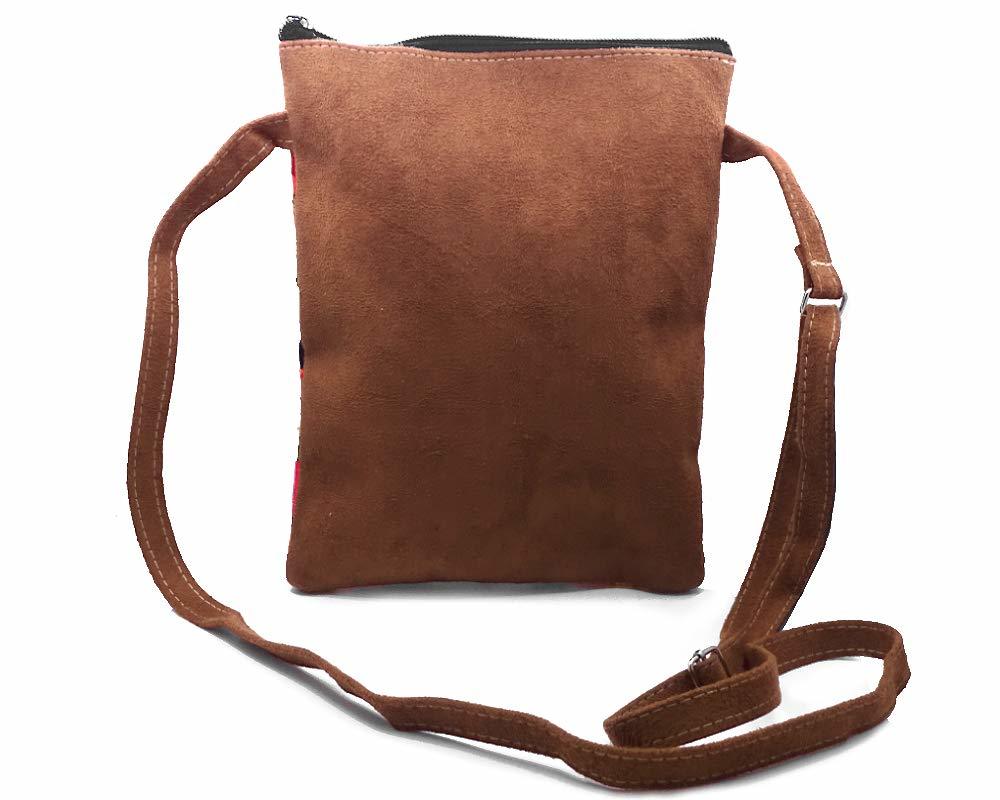Product description: Carry a springtime garden with you everywhere you go, bringing vitality and and a sense of style as you wear this high-quality flower purse. Made with brown leather suede and a colored cotton fabric, this fashionable yet casual piece is embroidered with a vibrant and colorful floral pattern. Perfect medium size to fit your essentials yet easy to carry around.