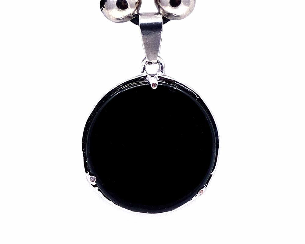 Dimensions: approximately 15.2 inches x 1 inch x 0.3 inches | 1.5 inches x 1 inch x 0.3 inches (pendant) | 29 inches (cord length) Weight: 0.3 ounces Adjustable sliding knot black cord necklace attached for preferred fit. Tested for non-toxic materials. Handmade in Peru.
