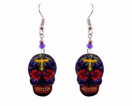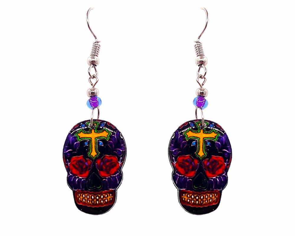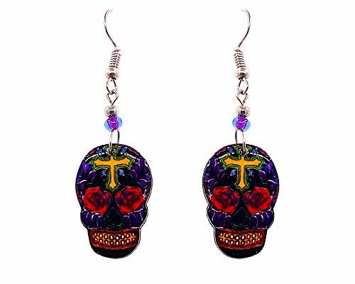 Day of the Dead Sugar Skull Holiday Graphic Dangle Earrings - Womens Fashion Han