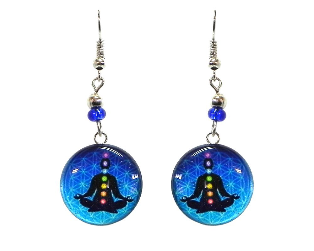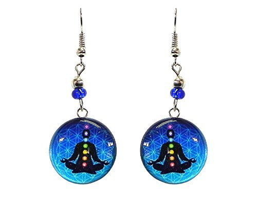 Round New Age Spiritual Chakra Graphic Metal Dangle Earrings - Womens Fashion Ha