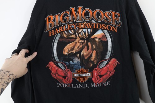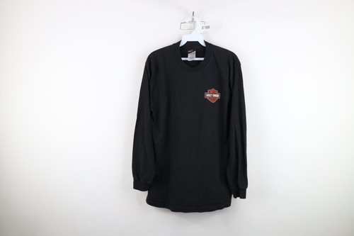 Vtg Harley Davidson Mens Medium Faded Spell Out Long Sleeve T-Shirt Black USA