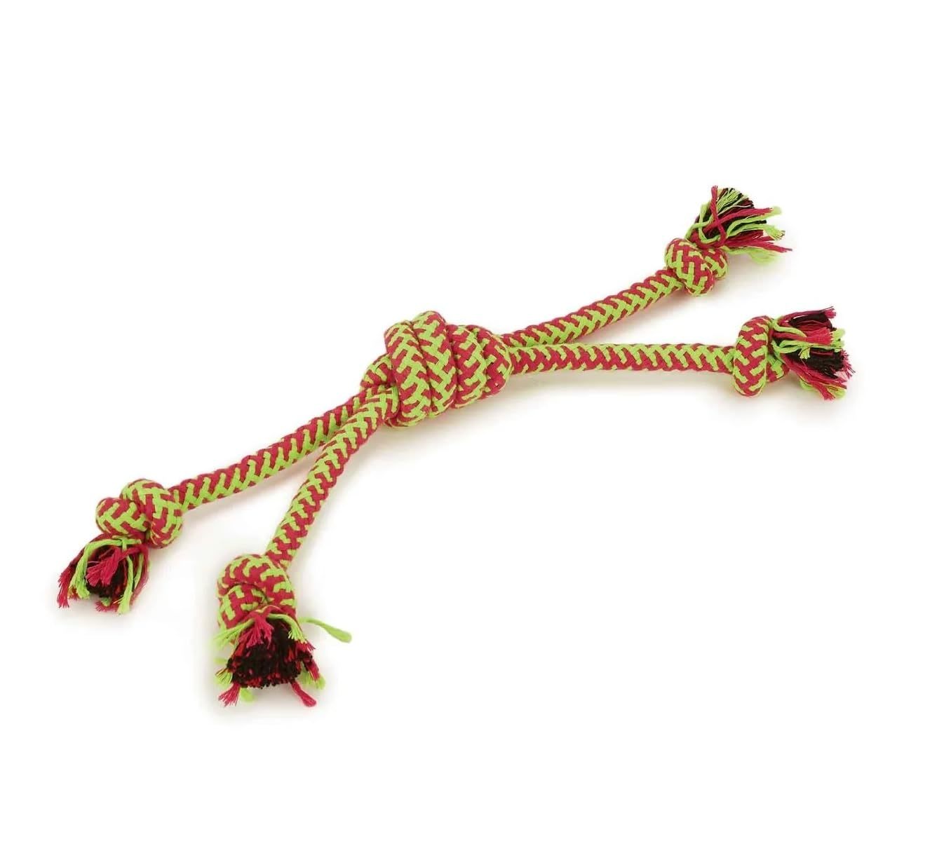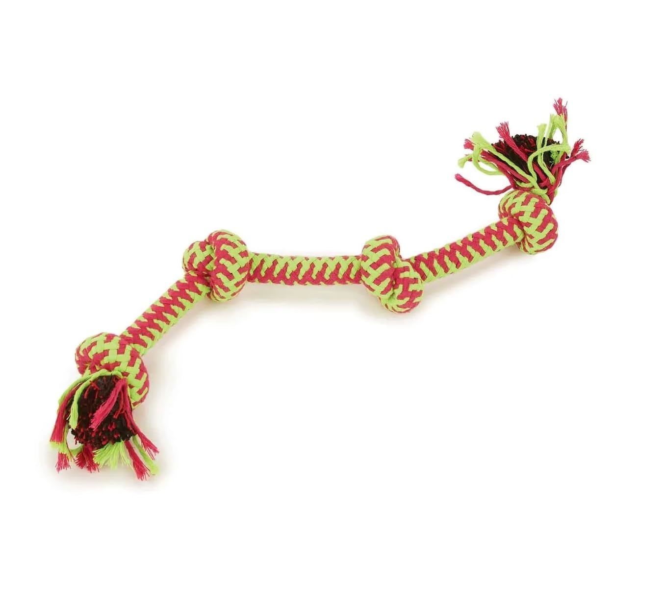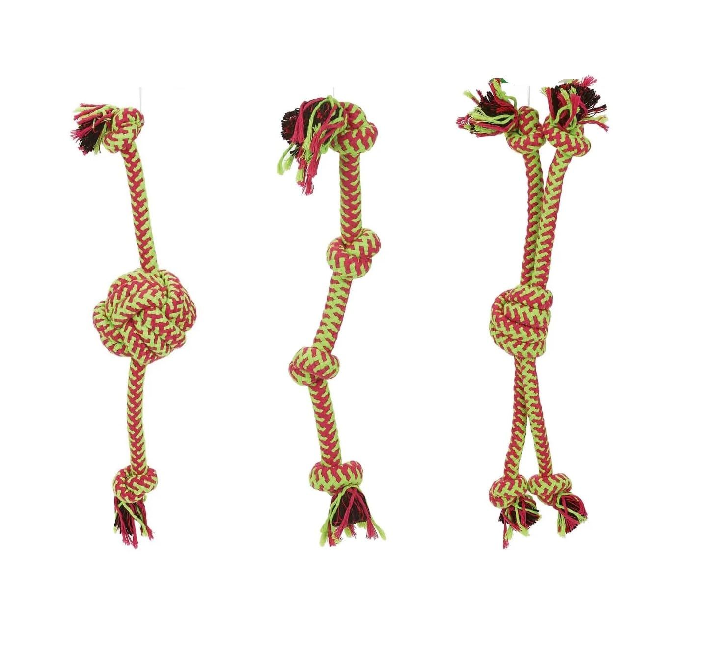 20 Inch Big Dog Rope Toys An ideal toy for dogs favorite game of tugging, fetching, and chewing. Great for bonding and playing with pets. Promotes healthy teeth and gums and provides chewing entertainment. Relives boredom and encourages exercise! Made of durable cotton rope material. Available in big knot, four rope, figure ex, or full set of all 3 toys!
