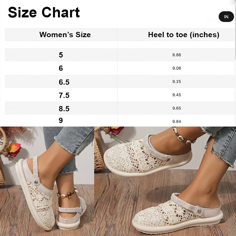 Product description: Step into effortless elegance with our Lace Clog Sandals, designed for the modern woman who values both style and comfort. These sandals are the perfect blend of fashion and functionality, making them a must-have addition to your footwear collection. Key Features: - True to Size Fit: Enjoy a perfect fit with sizes ranging from US Women's Size 5 to 9, ensuring every step you take is confident and comfortable. - Heel Type: Flat with a low heel height of 1cm-3cm, these sandals provide the right amount of lift without sacrificing comfort. - Design Details: Featuring a covered side vamp and a back strap for secure wear, these sandals are adorned with elegant sewing elements that add a touch of sophistication to your casual look. - Premium Materials: Crafted with a breathable mesh upper, a soft EVA insole, and a durable rubber outsole, these sandals promise lasting comfort and resilience. - Color Options: Available in two versatile colors ? pristine White and subtle Apricot ? perfect for complementing any outfit. Practical Benefits: - Breathability: The air mesh upper ensures your feet stay cool and comfortable all day long. - Lightweight Design: Move with ease thanks to the lightweight construction that makes these sandals ideal for daily wear. - Soft Sole Comfort: The soft sole provides cushioning with every step, reducing foot fatigue and keeping you comfortable whether you're running errands or enjoying a casual day out. - Casual Elegance: These flat sandals are perfect for any casual occasion, offering a laid-back yet polished look that enhances your everyday style. Slip into the Lace Clog Sandals and experience the perfect harmony of fashion-forward design and unbeatable comfort. Whether you're dressing up or down, these sandals are your go-to choice for a chic and effortless look. Don?t miss out on the opportunity to elevate your footwear game ? grab your pair today and step out in style!