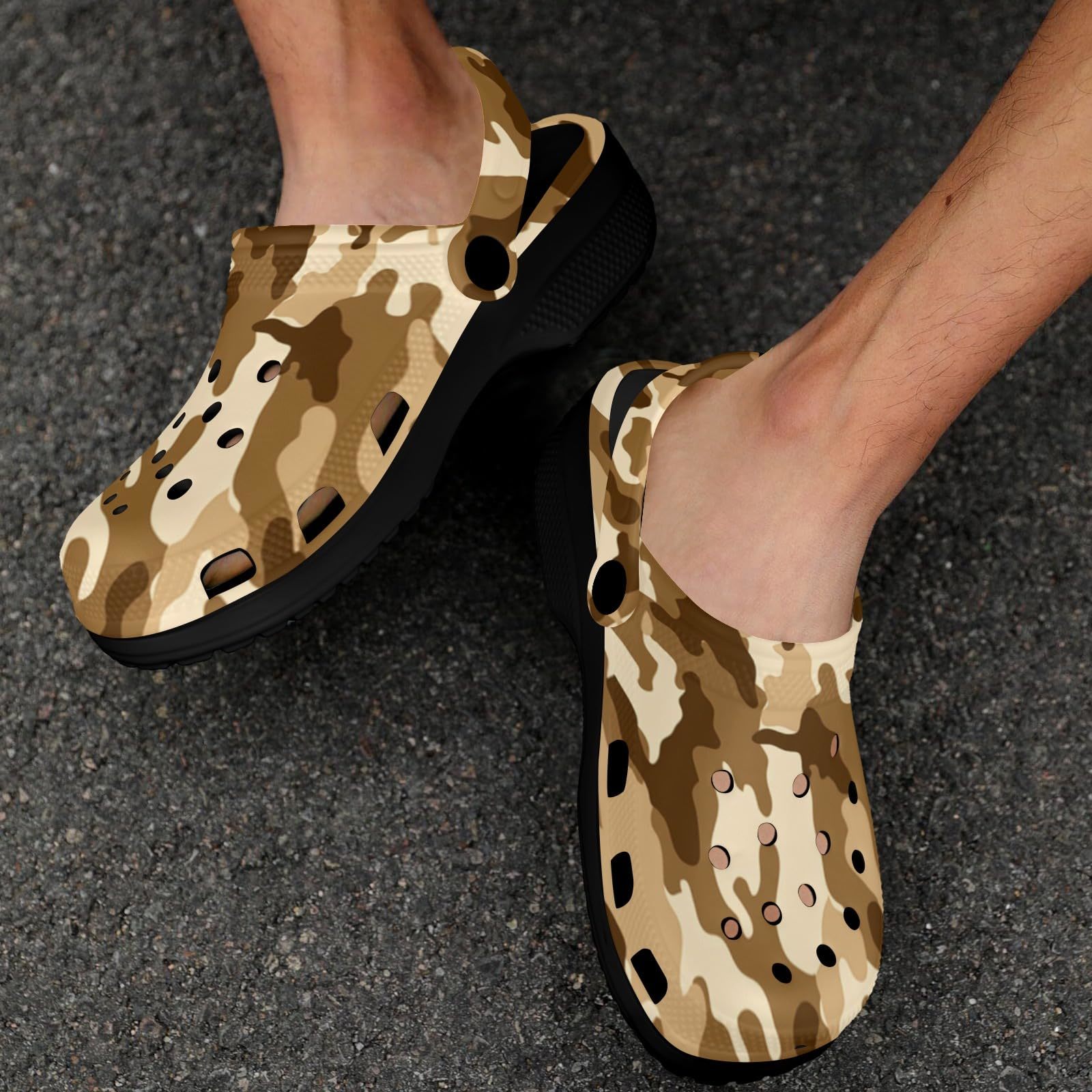 Military Fatigue Camouflage Premium Clogs (Brown Camouflage | Black Base, US Foo