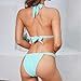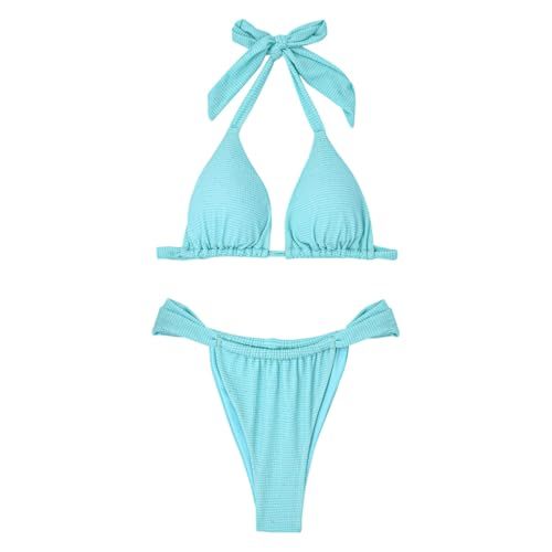 Textured Ribbed Halter Bikini Top and Bottom Set, Aqua Blue Two Pieces Swimwear