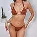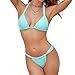 Product description: Turn heads at the beach or pool with this stylish and sultry bikini set. The vibrant turquoise hue is a refreshing pop of color that complements sunkissed skin. The triangle top features adjustable straps for a customized fit, while the cheeky bottoms offer moderate coverage. Crafted from a soft, stretchy ribbed material, this bikini hugs your curves in all the right places. Whether lounging poolside or taking a dip in the ocean, you'll feel confident and comfortable in this flattering two-piece swimsuit. Size up for a fuller coverage fit.