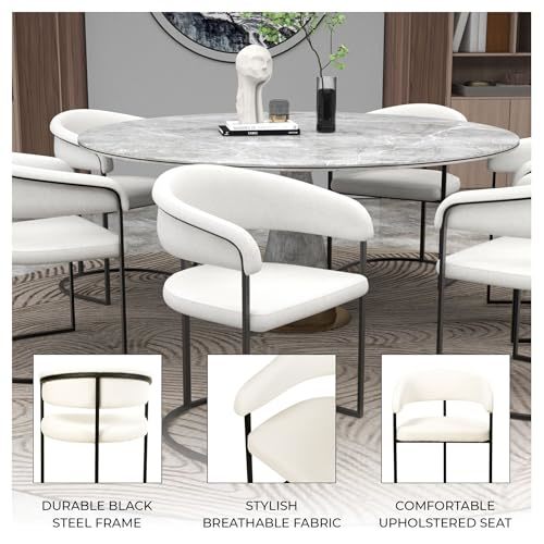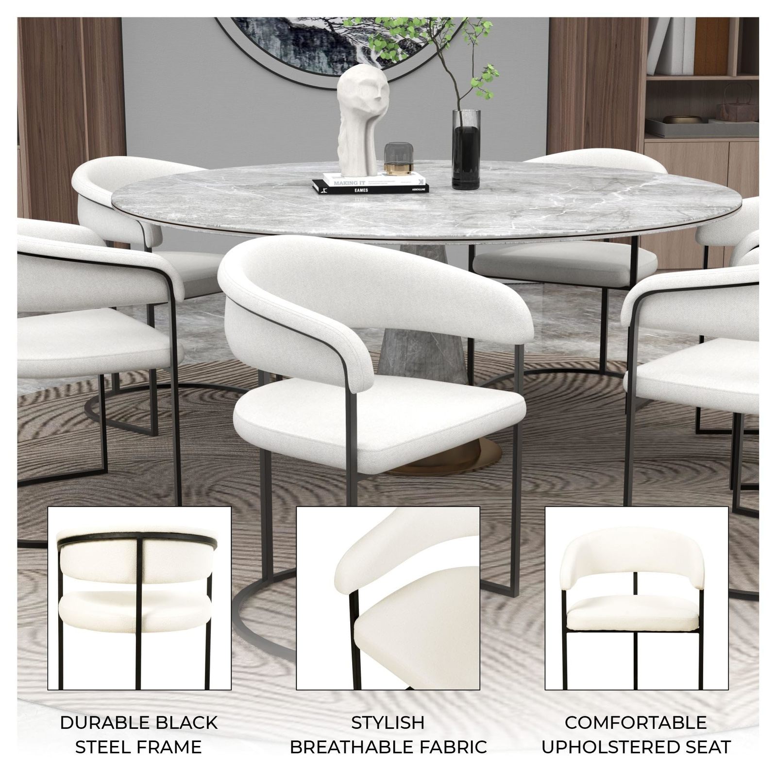 Enhance your dining experience with the Aero Dining Chair. Designed with a blend of contemporary style and functional comfort, this chair is perfect for your kitchen, dining room, or office. The chair features a sleek black finish that complements any decor, while offering three upholstery options: faux leather, polyester, and boucle. The padded seat with sponge filling and minimalist curved backrest provide exceptional comfort, making it ideal for long meals or extended work sessions.