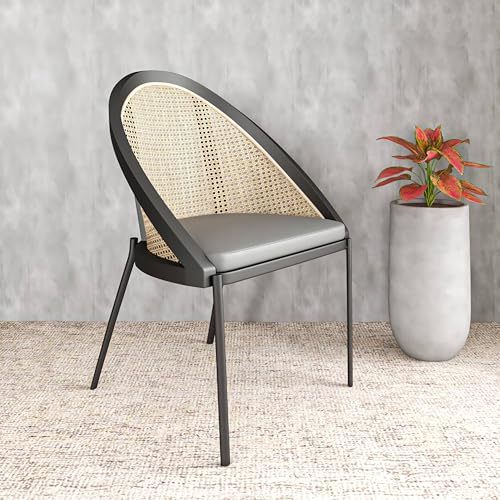 Bullet point: [CONTEMPORARY DESIGN] The LeisureMod Urbane Dining Chair brings a sleek, modern look to any dining or living space. It features a beautifully curved rattan back that adds a touch of sophistication and elegance. The transparent back not only enhances the chair's stylish appeal but also makes the room feel more open and spacious, making it perfect for smaller spaces or minimalist interiors.