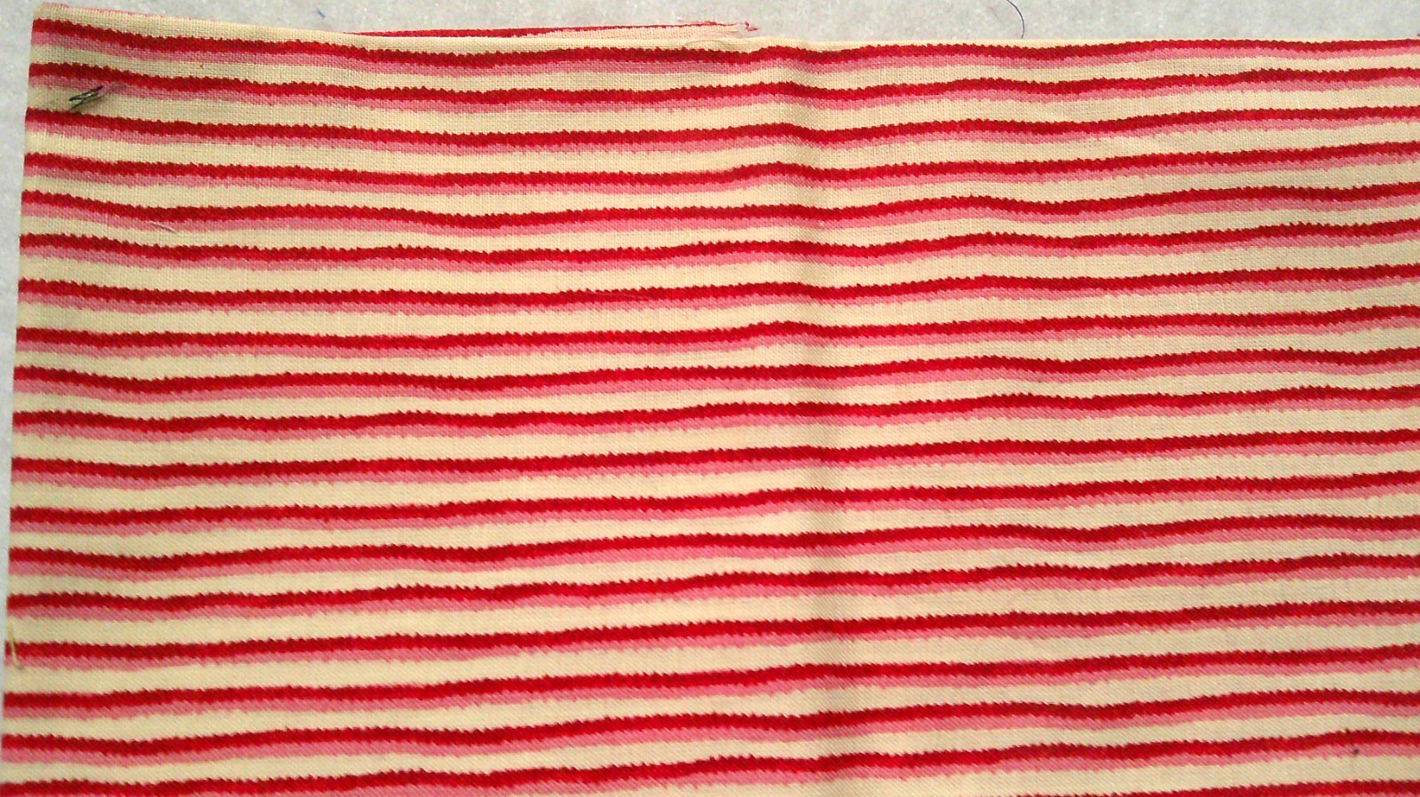 This fabric listing is by Timeless Treasures in a small stripe of maroon, pink and peach. This is a fat quarter measuring 18" x 22".