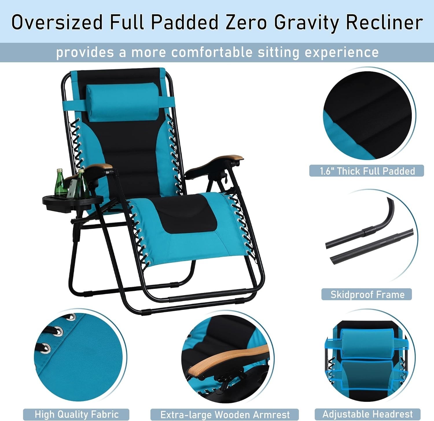 PHI VILLA XXL Oversized Padded Zero Gravity Chair Up to 400LBS Aqua