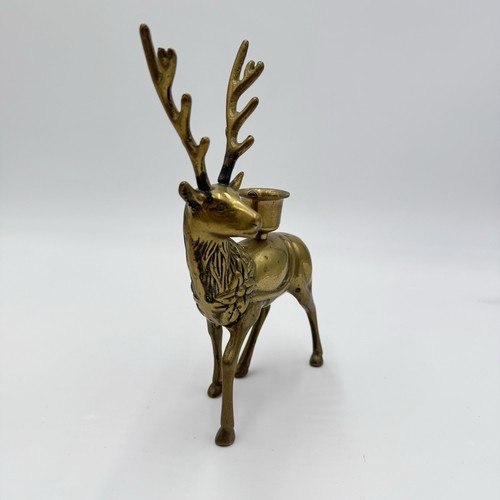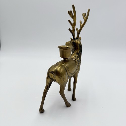 Vintage Brass Deer Statue Figurine Vastu Feng Shui 8” Candle Holder Christmas