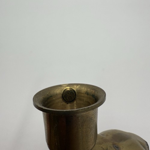 Add a touch of vintage charm to your home decor with this beautiful brass deer statue. With its majestic antlers and warm gold finish, this candle holder will make a stunning addition to any room. Measuring at 8 inches in height this medium-sized figurine is perfect for displaying candles or as a standalone decorative piece.
