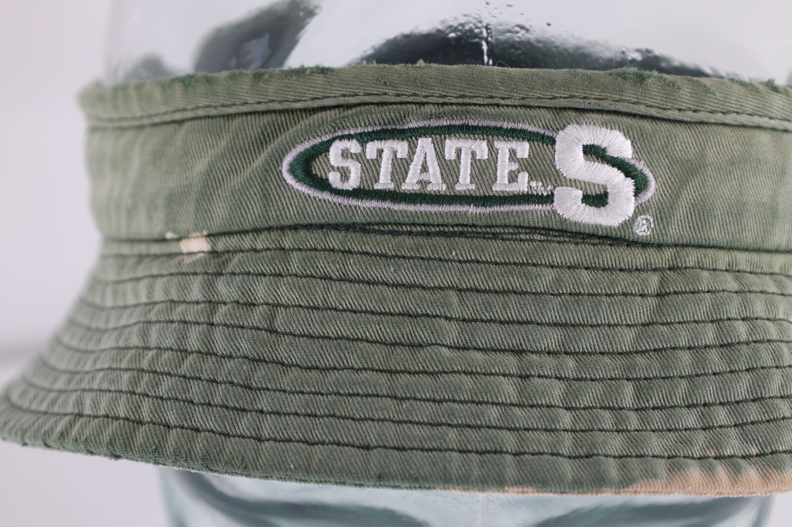 Vtg 90s Streetwear Distressed Michigan State University Visor Bucket Band Hat