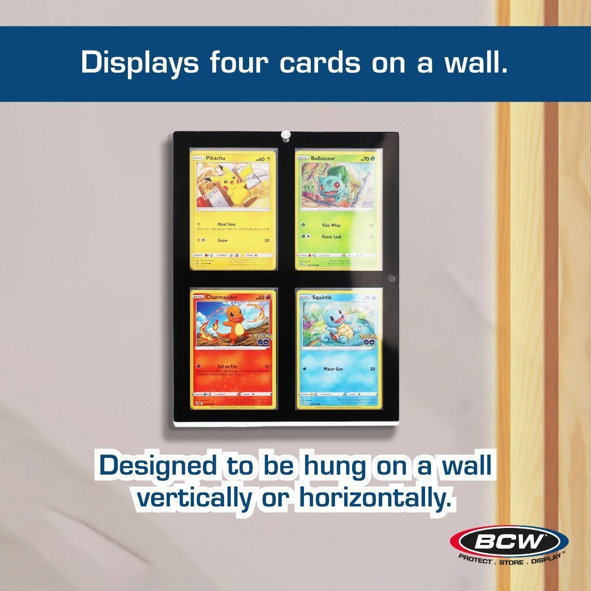 Each card fits into a recessed well with arrowhead corners, ensuring clean, sharp edges stay protected. Simply separate the magnetic panels using the corner slot, place your cards, and snap the holder back together. The back includes slots for both vertical and horizontal wall mounting, making it easy to create an eye-catching display. For collectors storing thicker cards, consider our Thick Magnetic Holders. Whether you're decorating your space or preserving high-value pulls, the BCW Magnetic 4-Card Holder is a perfect choice for serious collectors.