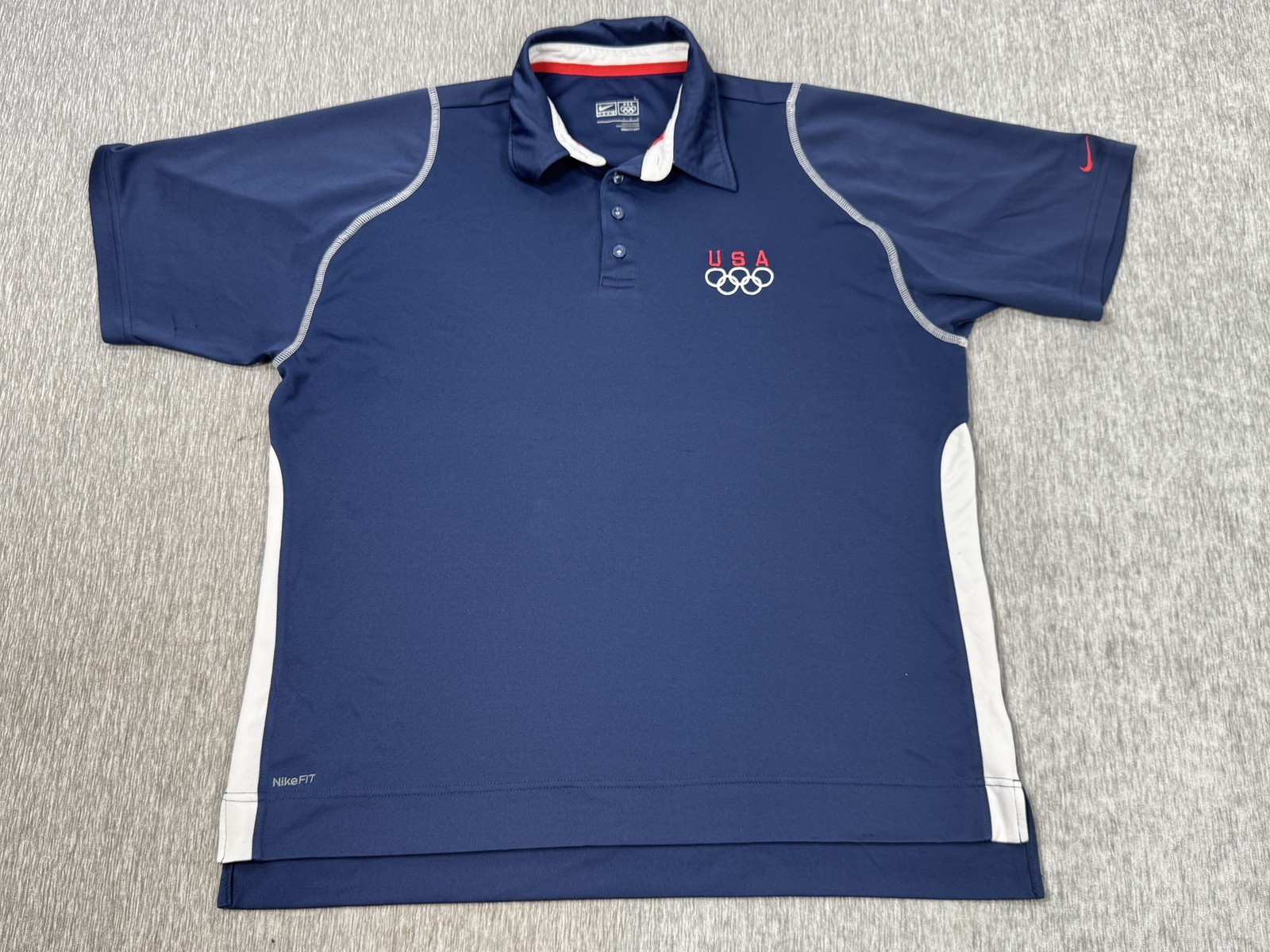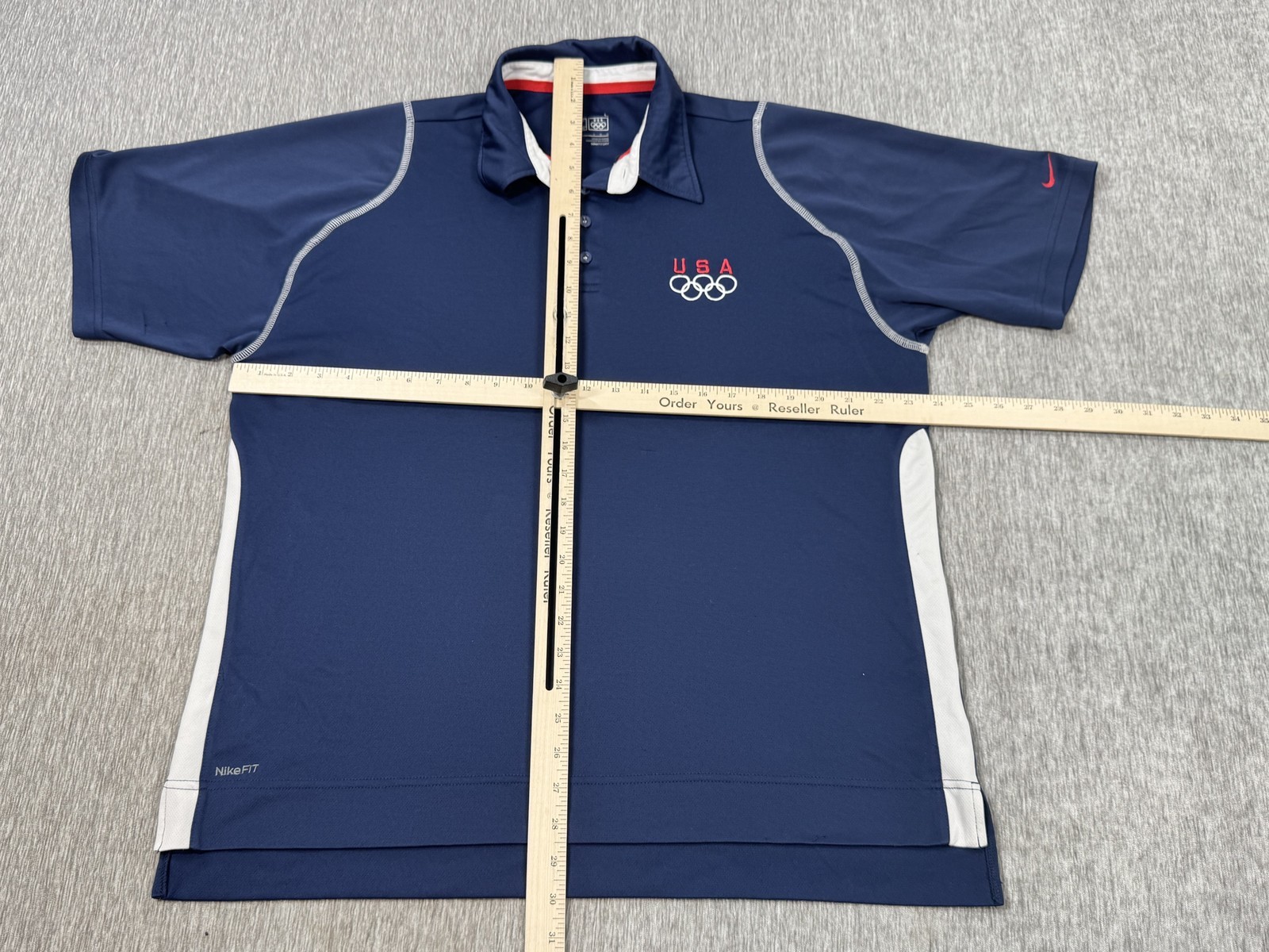 USA Olympics Shirt Mens Large Blue Nike Fit Dry Polo Team Olympic Games Performance