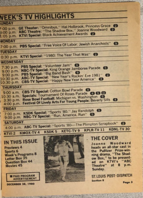 TV MAGAZINE St Louis (MO) Post-Dispatch December 28 1980 Joanne Woodward cover