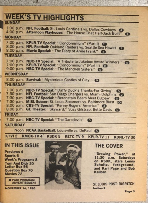 TV MAGAZINE St Louis (MO) Post-Dispatch November 16 1980 DRAWING POWER cover