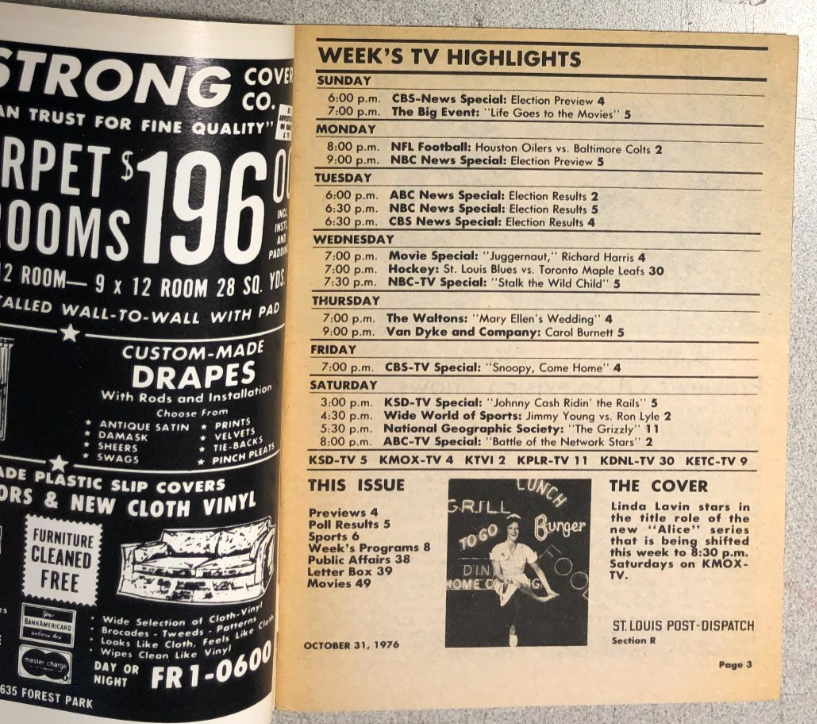 TV MAGAZINE St Louis (MO) Post-Dispatch October 31 1976 Linda Lavin ALICE cover