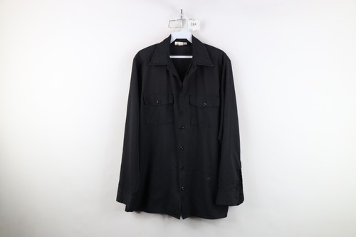 Vintage 90s Dickies Mens 15 34/35 Thrashed Mechanic Work Button Shirt Black USA