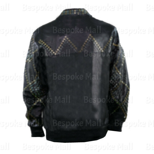 New Men's Black Silver Golden Studded Designed Rock Cowhide Leather Jacket-852