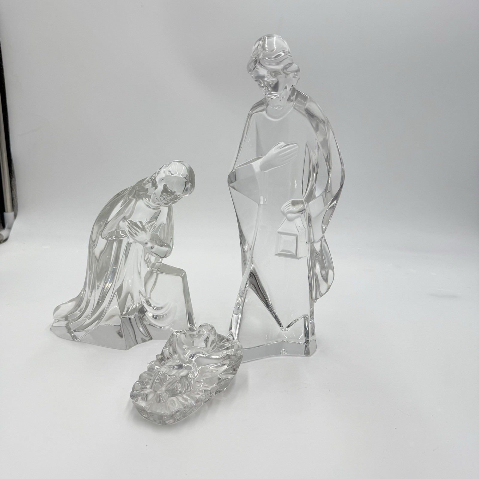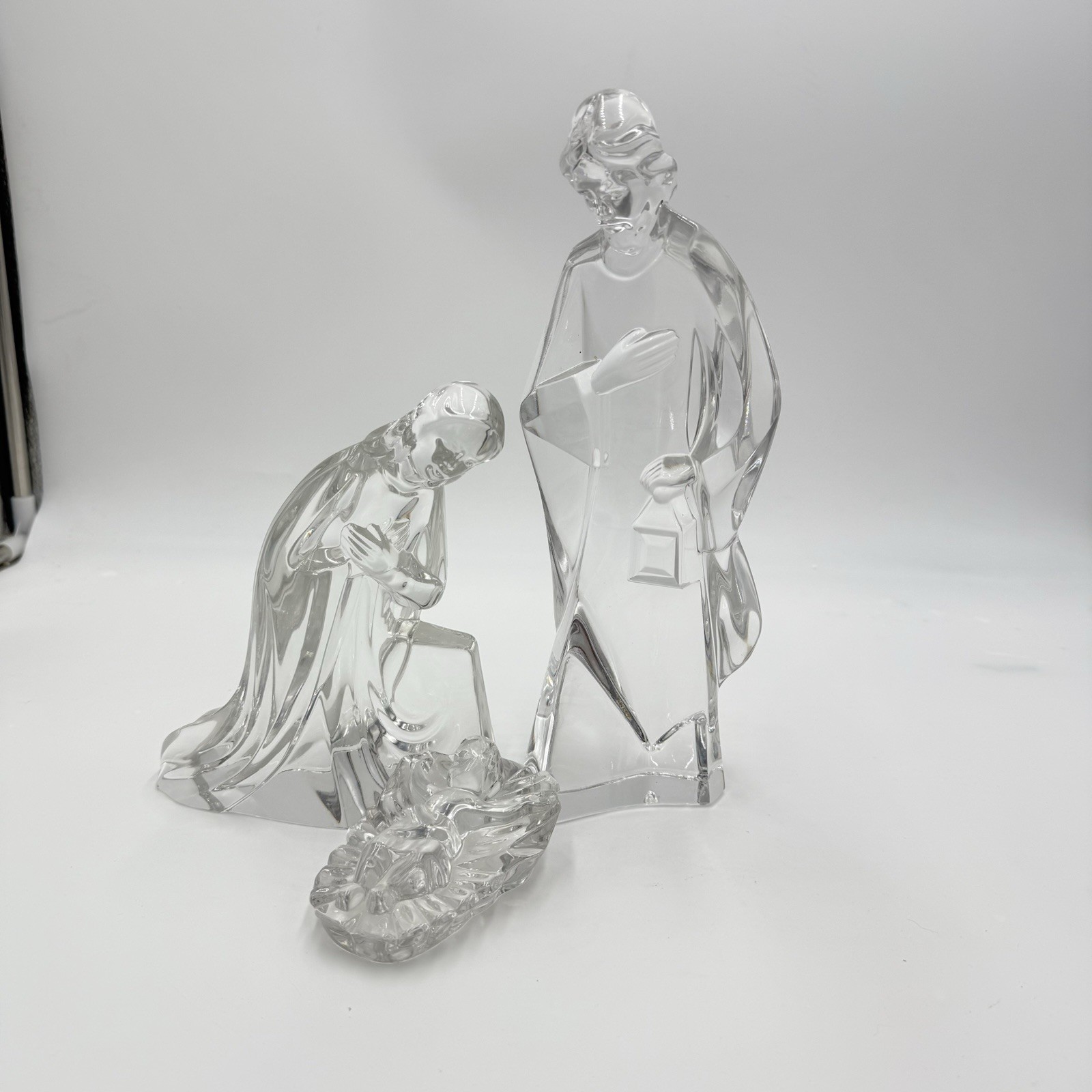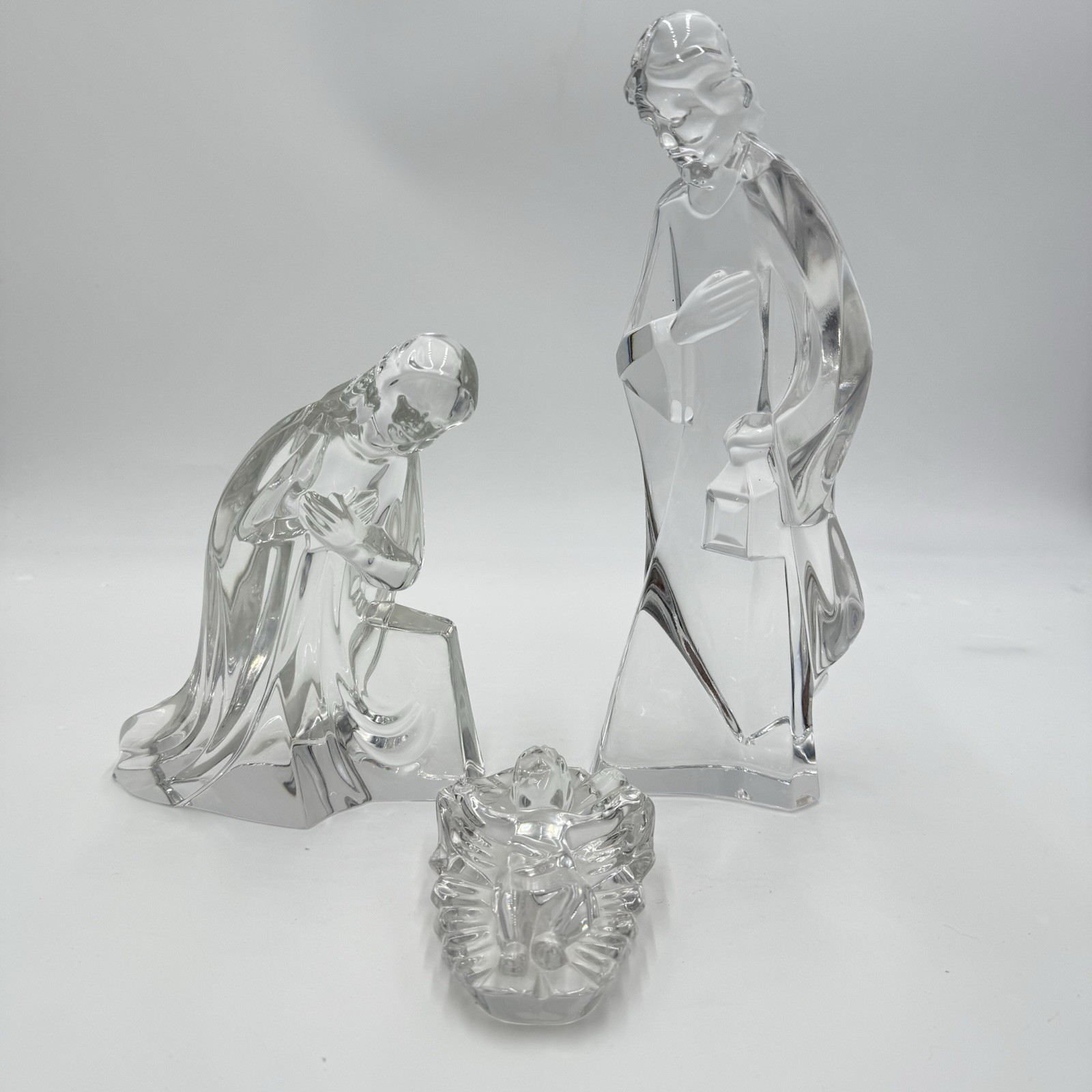 Mikasa Large Lead Crystal 3 Piece Nativity Set Jesus Mary Joseph Germany Vintage