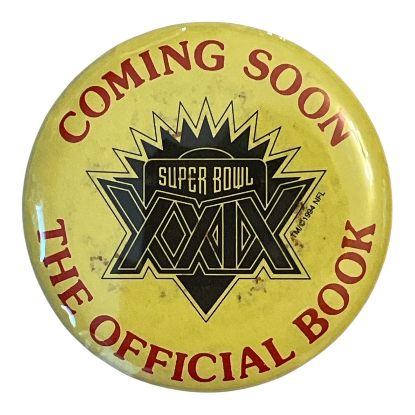 Vintage Super Bowl XXIX Promo Pinback Button ? ?Coming Soon: The Official Book? ? 1994 NFL Licensed ? 3 Inch