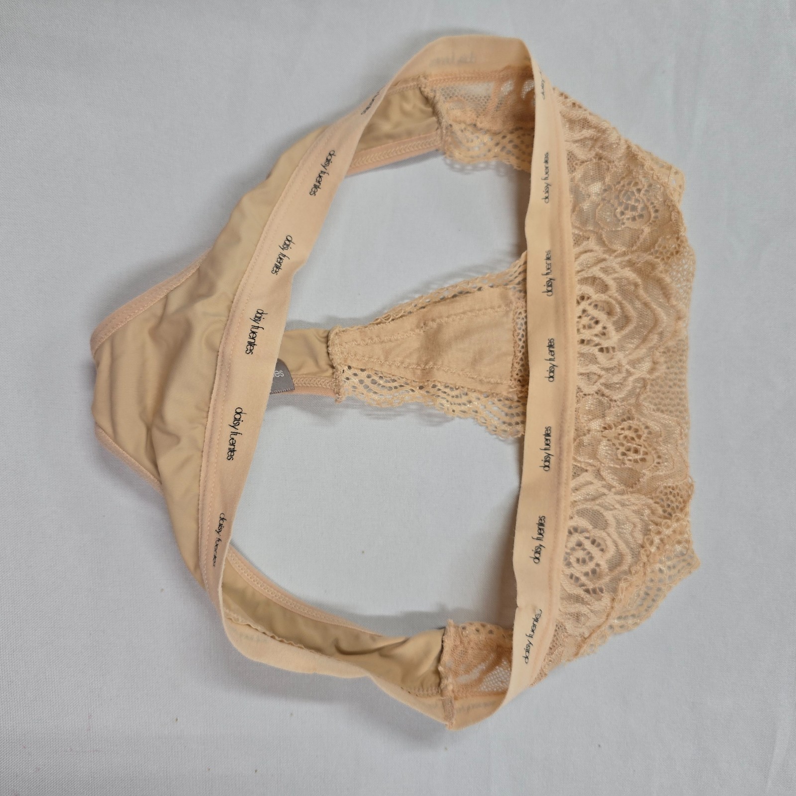 DAISY FUENTES NUDE BEIGE FLORAL LACE VINTAGE SHEER THONG PANTIES L LARGE