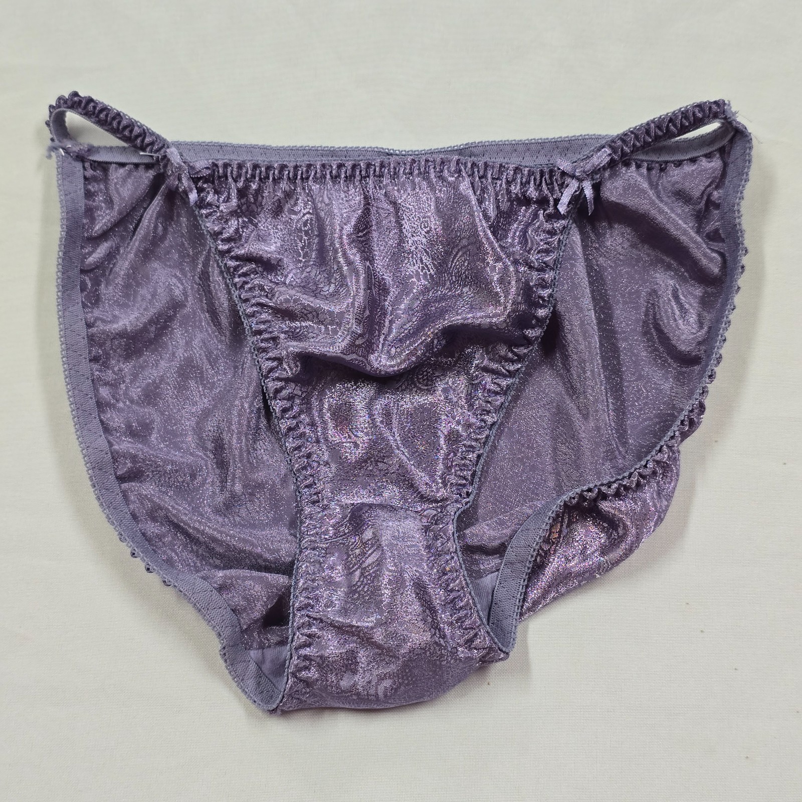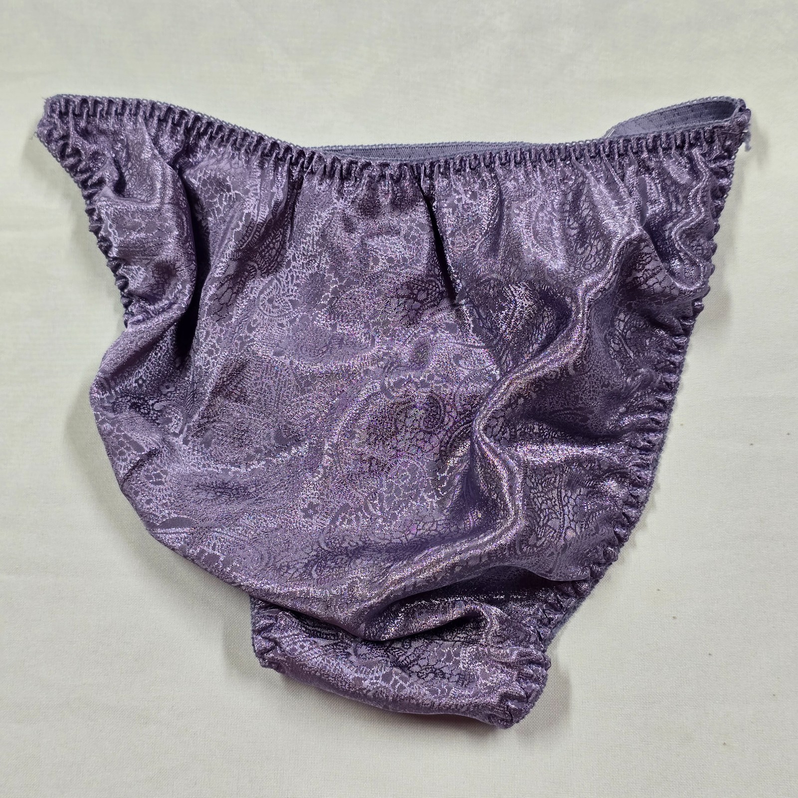 Vintage Gilligan O'Malley Satin String Bikini Panty Paisley Purple Floral XL 8