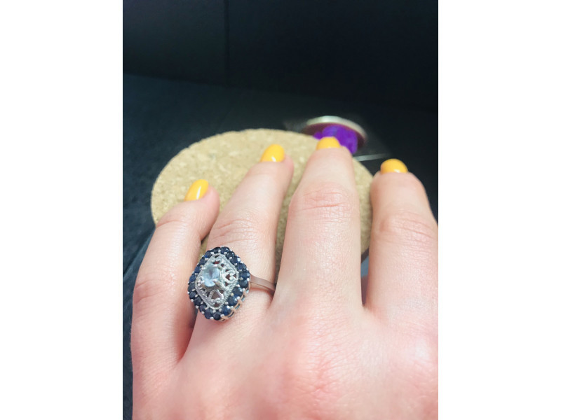 925 Sterling Silver Aquamarine & Dark Blue and 49 similar items