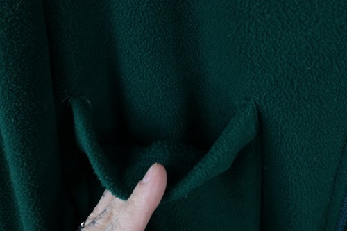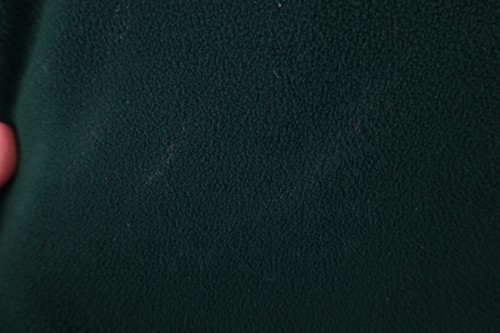 Stains on back. Has pilling. Fleece matted, color faded. Has some stuff stuck to the fabric