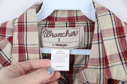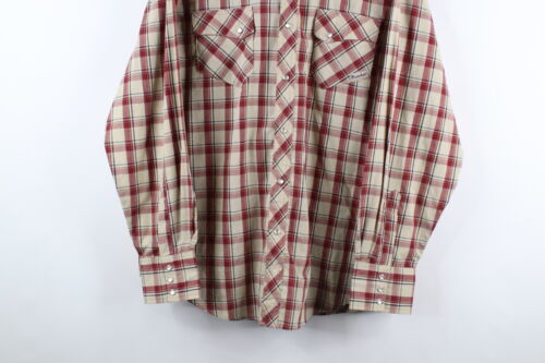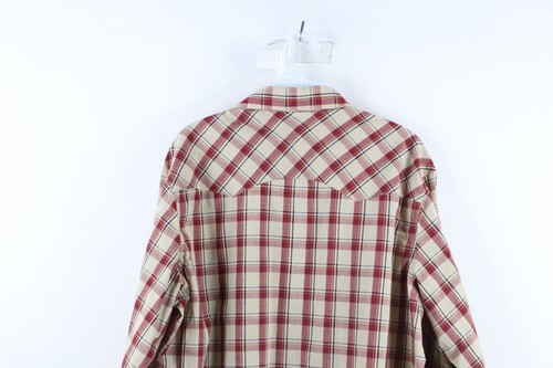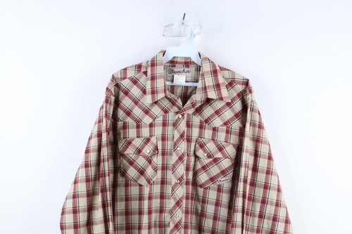 Vintage 90s Wrangler Wrancher Mens Large Rodeo Snap Button Collared Shirt Plaid