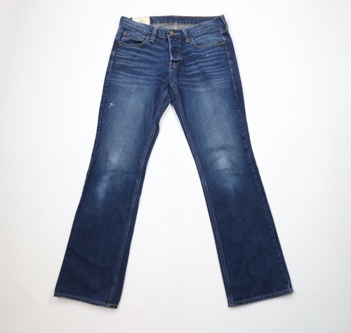 Vtg Y2K Hollister Mens 32x34 Distressed Button Fly Flared Bootcut Denim Jeans