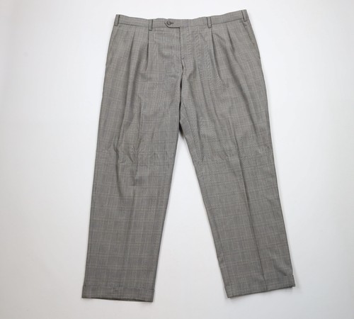 Vintage 90s Ralph Lauren Mens 42x30 Distressed Houndstooth Cuffed Wide Leg Pants