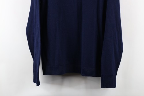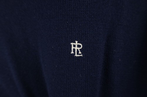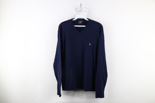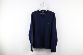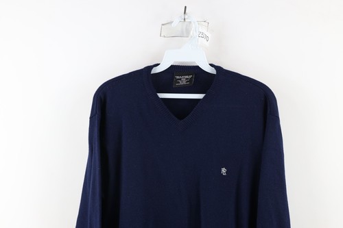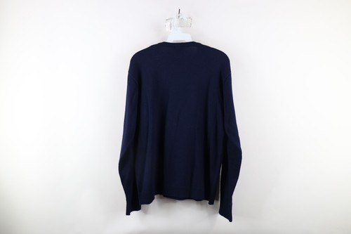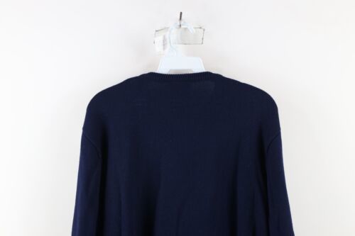 Vintage 90s Ralph Lauren Mens Medium Monogram Knit V-Neck Sweater Navy Blue