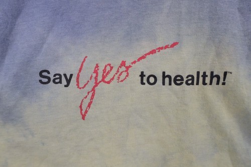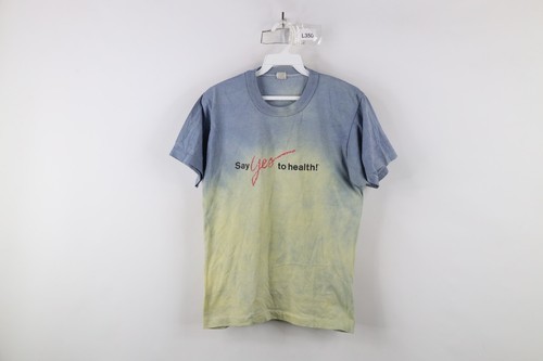 Vintage 80s Womens Medium Distressed Say Yes To Health Acid Wash T-Shirt USA