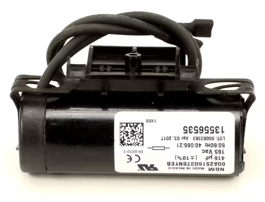 True 60A2S160378NYEB, 13556535 Start Capacitor, 416uF, 165V, 50/60Hz ? Compressor, 115V Unit is a genuine OEM start capacitor engineered to provide the initial torque needed to start compressors in 115V True refrigeration units. With a capacitance of 416 microfarads (uF) and a 165V AC rating, it ensures powerful and consistent startup performance, helping to protect compressor motors and extend their service life. Designed for heavy-duty commercial use, this capacitor features a durable round casing and quick-connect terminals for fast and secure installation.
