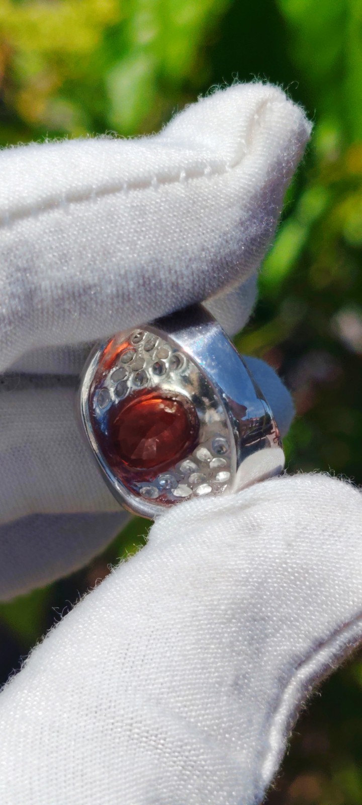 Natural Untreated Genuine Hessonite Garnet, Guaranteed Kenyan Origin. Stone Weight: 2.7 Carats. Clean Stone with Premium Luster. Handmade Silver Setting. Size 17 Asia or 7.5 US (Resizable). Shipping Included worldwide. Available . Thank you for your support! ?