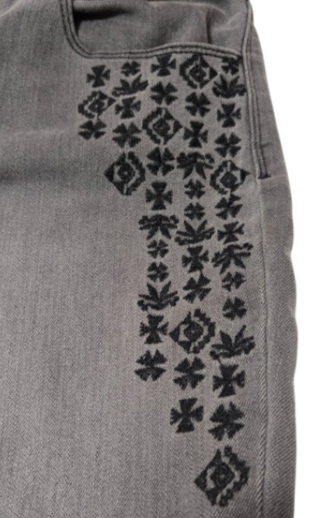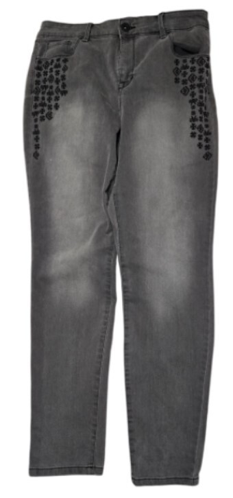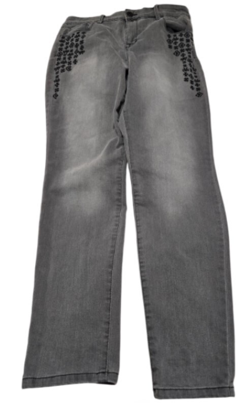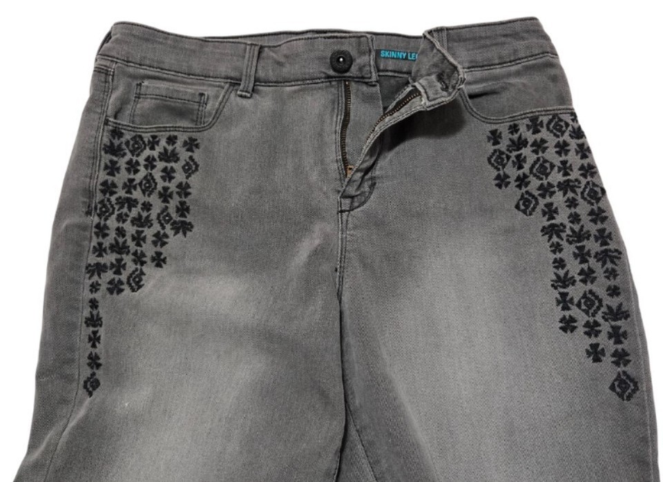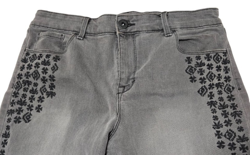 Style & Co Gray Denim Stretch Geometric Embroidered Skinny Leg Jeans (Size 12)