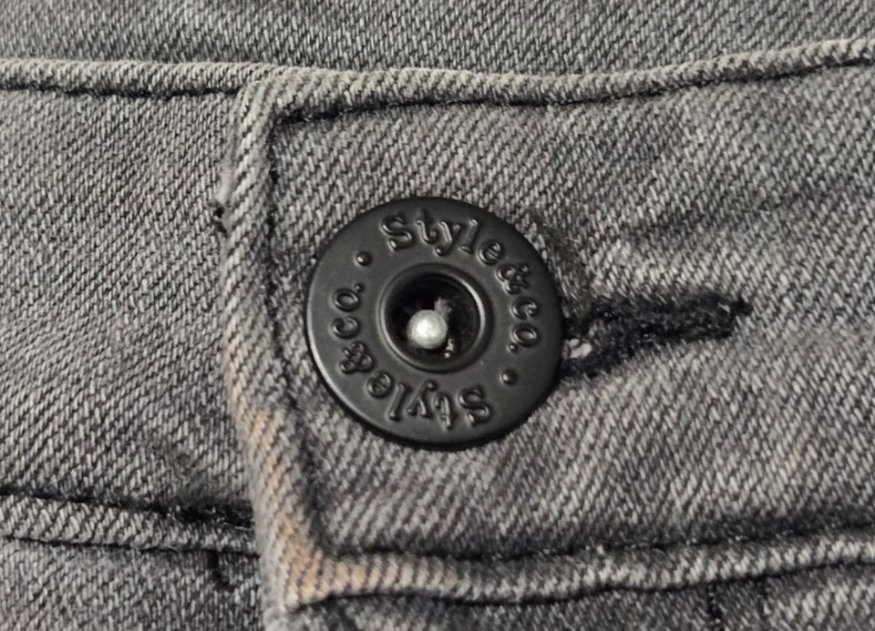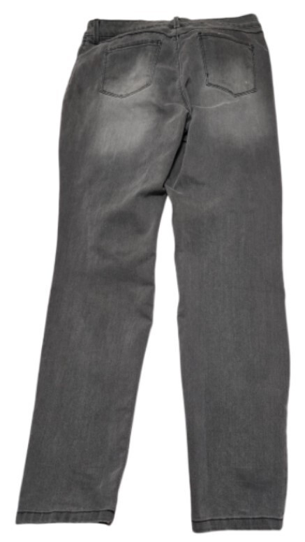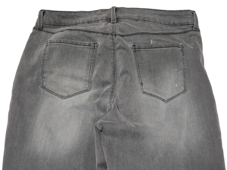 The Style Co Gray Denim Stretch Geometric Embroidered Skinny Leg Jeans in size 12 are a stylish and trendy choice for women's clothing. Made from a comfortable cotton blend denim fabric with a stretch feature, these jeans offer a slim fit for a flattering look. The geometric embroidery adds a unique touch to the design, while the charcoal wash gives them a modern and on-trend finish. Perfect for any season, these jeans are a versatile addition to any wardrobe, suitable for both casual and dressed-up occasions.