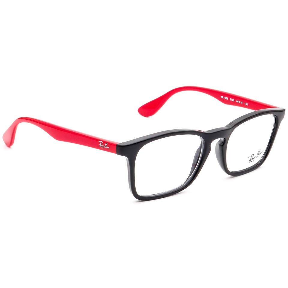 Ray-Ban Kids' Eyeglasses RB 1553 3725 Black on Red Rectangular Frame 46[]16 130