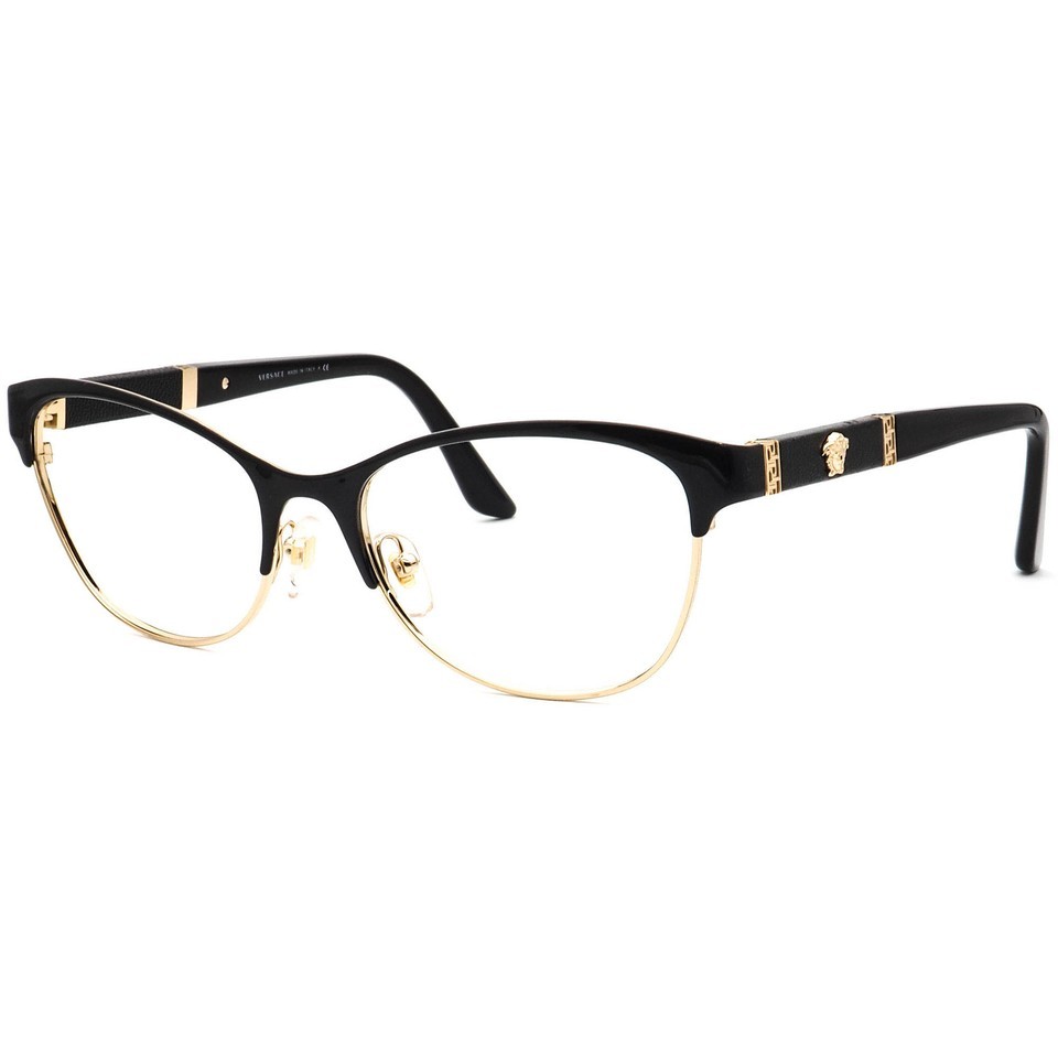 Versace Eyeglasses MOD. 1233-Q 1366 Black/Gold Cat Eye Frame Italy 53[]17 140
