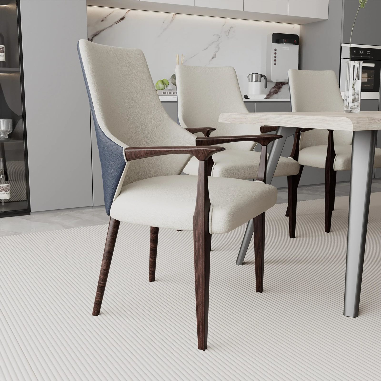 Special feature: Designed for both style and support, the Elm Dining Arm Chair features a high-back design with open sides for added breathability. Stain-resistant leather upholstery ensures durability, while solid ash wood legs provide reliable stability, supporting up to 400 pounds. A high-density sponge-filled seat offers firm, comfortable cushioning that maintains its shape over time. Arrives fully assembled for effortless setup.